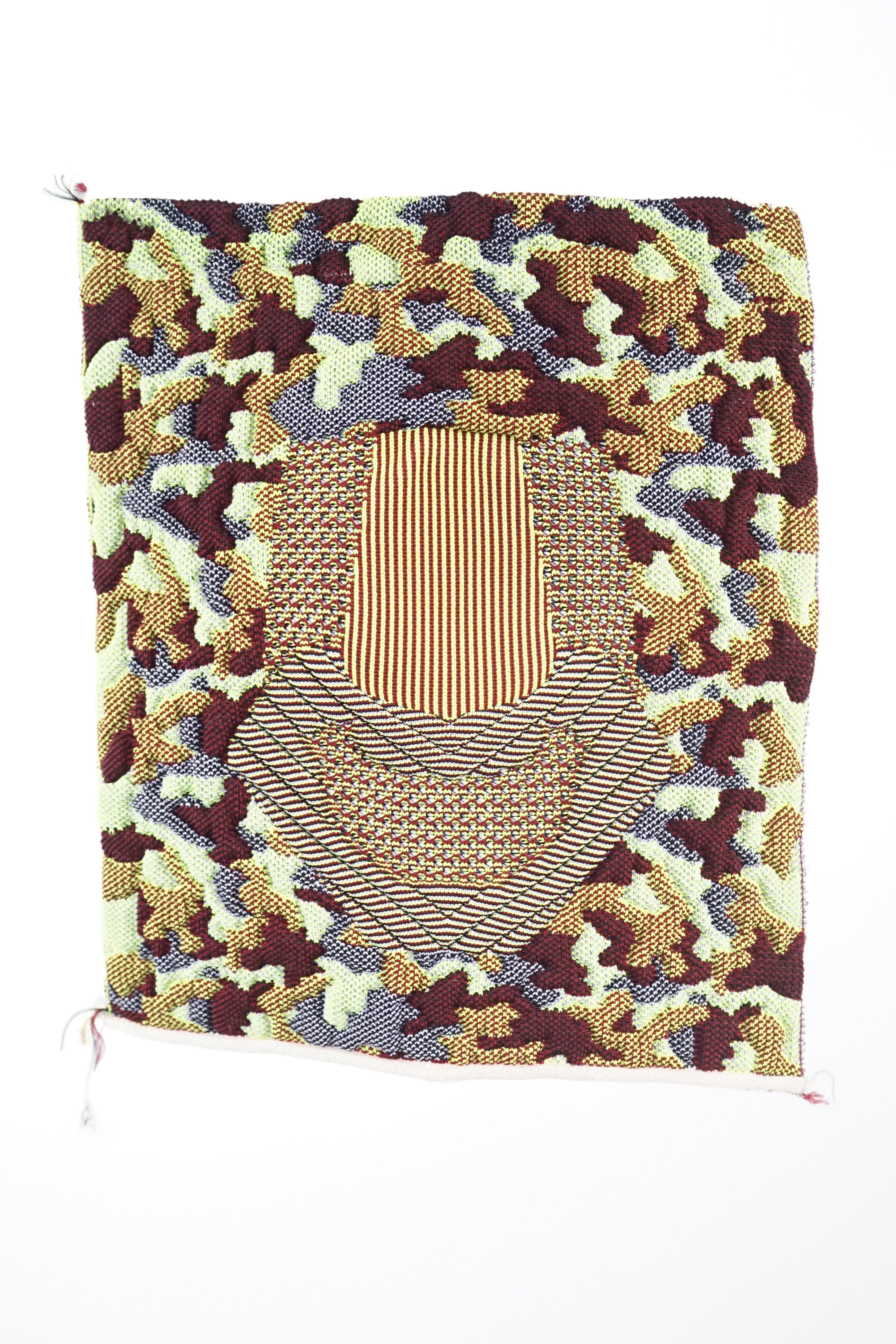 Shoe-upper with 4-colours featuring Stoll-ikat plating® with camouflage optic and weft insertion to create a puffy appearance.