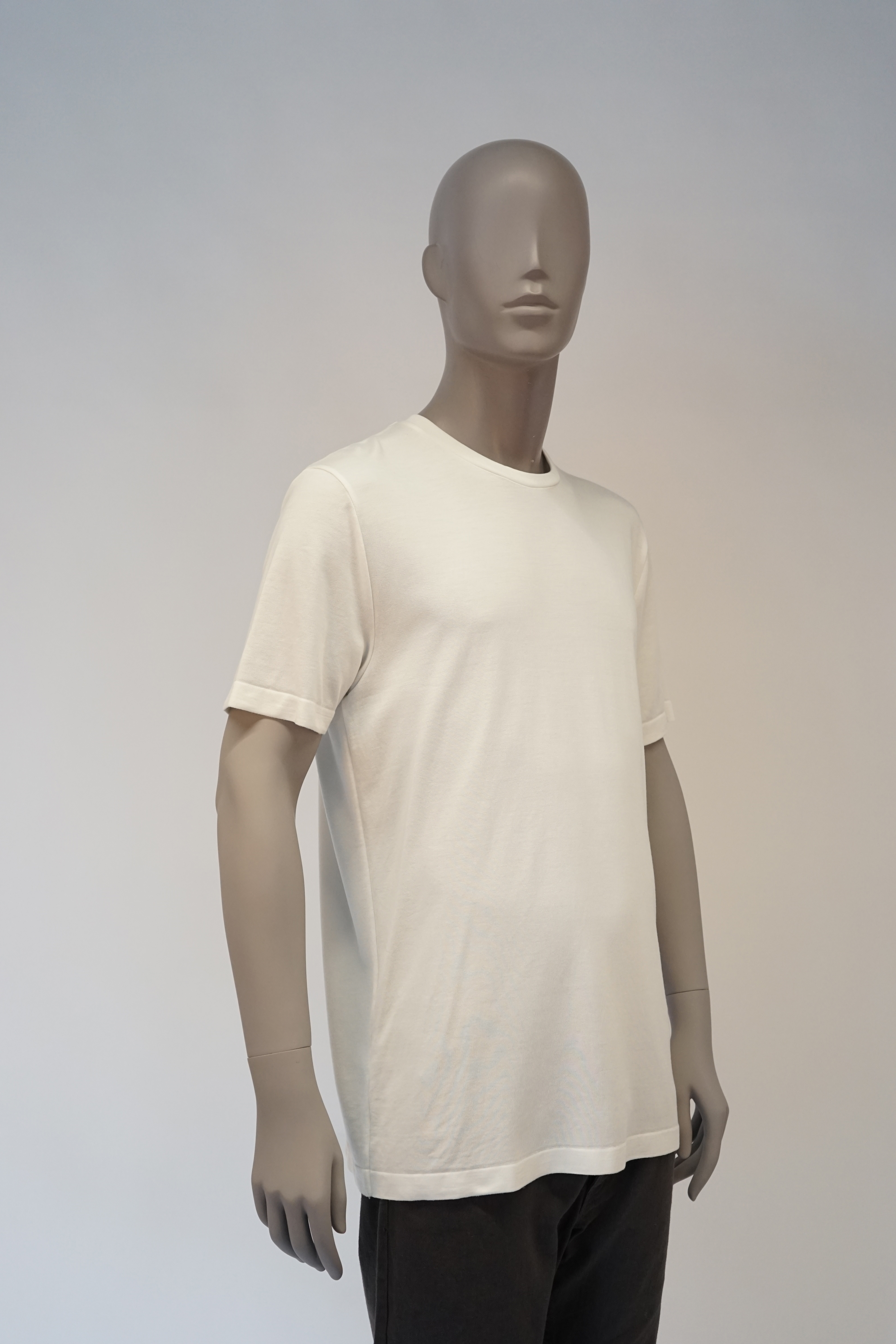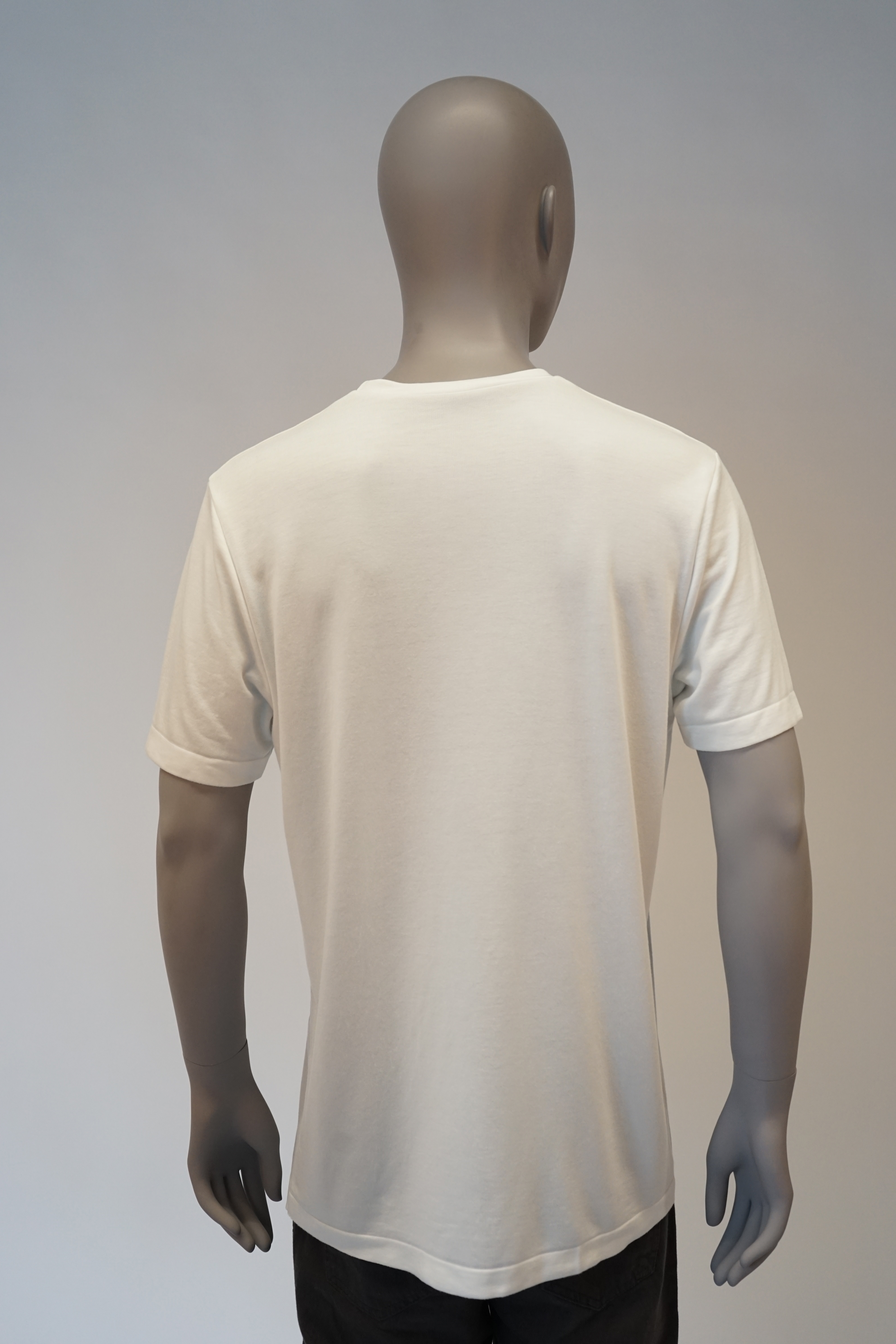 Fully Fashion Shirt für Herren aus 100% kohlenstofffreiem TENCEL™ Lyocell - 274 g/m², gestrickt mit der feinstmöglichen Feinheit E20. Die einzelnen Single-Jersey-Strickteile wurden wie ein Rundstrickhemd konfektioniert und nicht miteinander verbunden.